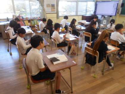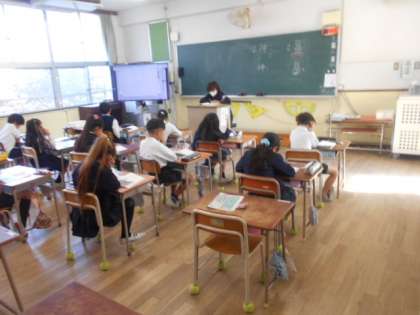 3年2組では国語科「モチモチの木」を学習します。まずコンピュータから流れる朗読の手本を聴いていました。登場人物は多くないですが、それぞれどんな人物なのかを想像しながら読み進めていきます。