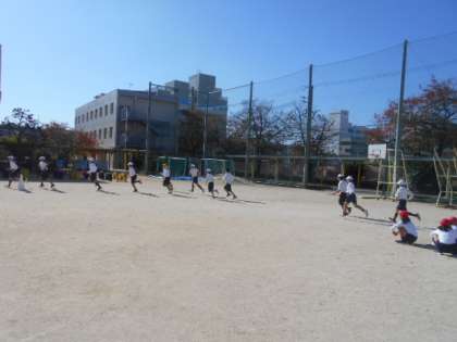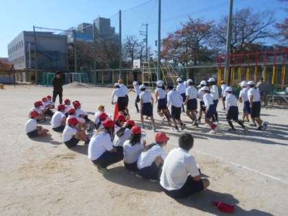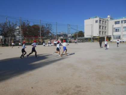 5年生は体育科の時間に5分間走に取り組んでいました。5分間トラックを何周も走ります。めあては「自分のペースをつかもう」ですが、大人数で走るので、周りのペースに乱されることもあるようです。それでも5分間走り切り、体育がんばりカードに何周走ったのかを記録していました。