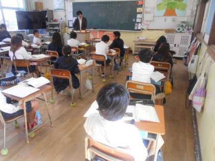 豆太の変容 公開日 2023/11/21 更新日 2023/11/21 3年 3年生は国語科「もちもちの木」を学習しています。1組では、一人で医者を呼びに行く前と後での豆太の変容について考えていました。怖がって、じさまの腕の中で震えていた豆太、それが医者を呼びに行った後、同じような挿絵がありますが、豆太のようすは全く変わったようです。 いいね(0)