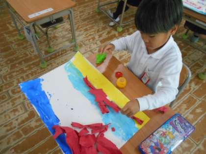 1年 図工 公開日 2023/11/22 更新日 2023/11/22 1年 紙をくしゃくしゃにしてちぎりました。 ちぎった形から「わに」「かに」など、様々なものを想像して作品をつくっています。 子どもの豊かな発想は本当に素敵です。 いいね(0)