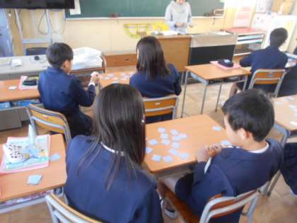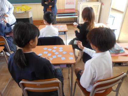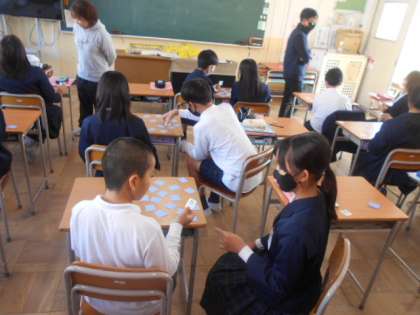 We have 〇〇. 公開日 2023/11/22 更新日 2023/11/22 6年 6年生は英語科の時間「We have 〇〇.」に取り組んでいました。カードを1枚とって、大阪にある施設なら「We have library.」大阪にない施設なら「We don’t have 〇〇.」と答えて1枚ゲットします。楽しみながら英語を身につけていました。 いいね(0)
