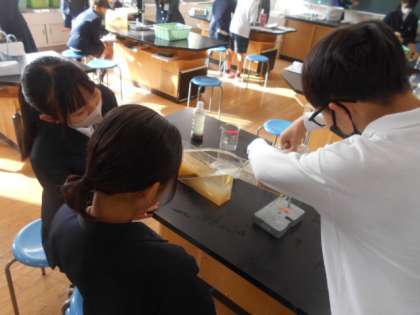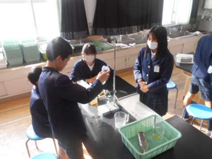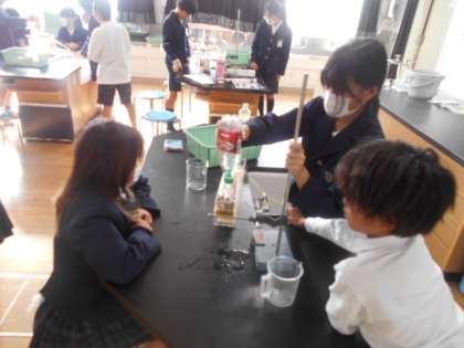 地層のでき方 公開日 2023/11/24 更新日 2023/11/24 6年 6年生は理科の時間に地層がどのようにできるか実験していました。川に見立てた水槽に土砂を流すと、1回目は下から「れき・砂・泥」の順に堆積しました。その上に2回目土砂を流すとどうなるのかを実験します。多くの児童がその上にまた「れき・砂・泥」が堆積すると予想しましたが、2人は「混ざってしまう」と予想しました。では、実験開始です。 いいね(0)