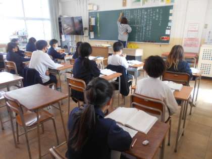 ヒロシマのうた 公開日 2023/11/24 更新日 2023/11/24 6年 6年生は国語科「ヒロシマのうた」を学習しています。被爆したヒロシマの元救護兵の「わたし」は、かろうじて助け出した赤ちゃんを通りすがりの人に預けました。7年後、「わたし」は、母子として生きている2人に再開した場面を読み取っていました。自分が強く心に残ったところ、そして、その理由について考えていました。 いいね(0)