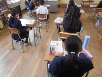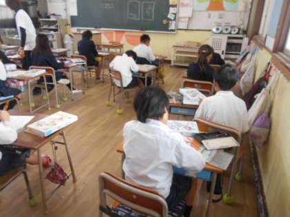 3年生では図画工作科「くぎうちトントン」に取り組んでいました。まずはゲーム板のデザインを下描きします。点数が入るスペースを工夫していました。野球やバスケットボールのデザインが多かったでしょうか。また季節的にクリスマスバージョンにした児童も何人かいました。