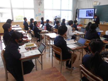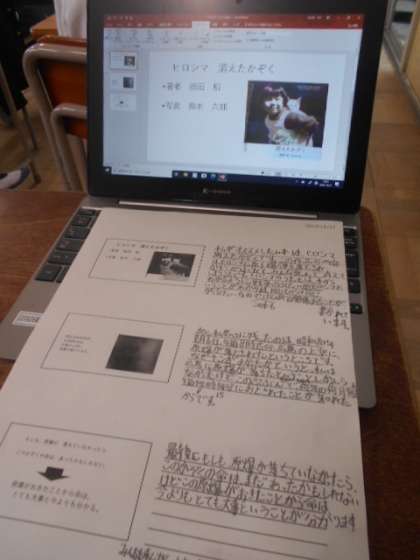 関連する作品を読んで紹介しよう 公開日 2023/11/27 更新日 2023/11/27 6年 6年生は国語科「ヒロシマのうた」を学習し、関連する作品をお友だちに紹介する取り組みをしていました。パワーポイントで、「作品の内容」「心に響いた文章や言葉」「自分の考え」を発表します。聴き手は「作品の良さが伝わったか」ノートに2行書きます。自分の素直な言葉で、相手に訴えるように発表していました。 いいね(0)