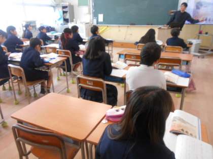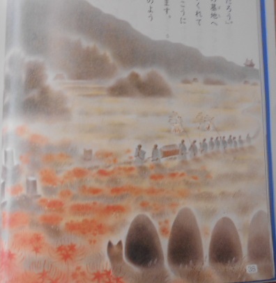 4年1組では国語科「ごんぎつね」を学習しています。兵十のお母さんが亡くなってお葬式をしている場面です。六じぞうさんのかげに隠れて見ている「ごん」の様子を読み取っていました。この後「ごん」の気もちや行動がどのように変化するのかを考えていきます。