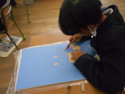 5年図工 公開日 2023/11/29 更新日 2023/11/29 5年 彫刻刀を使って版画を彫っています。 「手が疲れる」と言いながらも、安全に気をつけながら、細かいところまでがんばっていました。 いいね(0)