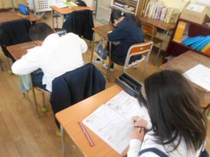 百分率 公開日 2023/11/29 更新日 2023/11/29 5年 5年1組では算数科「割合」を学習しています。本時では、割合を百分率での表し方について練習問題に取り組んでいました。できた児童から、先生のところへ見せに行って採点してもらいます。 いいね(0)