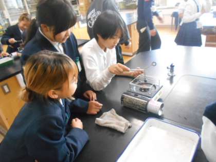 金属をあたためたとき、体積がどうなるのかを調べる実験です。