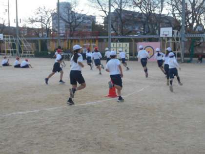 寒い季節の運動と言えば、持久走。 見ている子たちの応援にも励まされながら、最後までがんばって走りました。