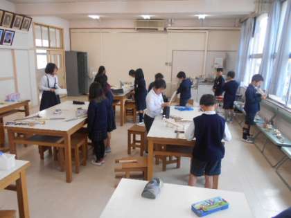 ギコギコ トントン 公開日 2023/12/07 更新日 2023/12/07 4年 4年1組では図画工作科「ギコギコ トントン」の工作に取り組んでいました。写真を撮り始めた時には、工作が終わって後片付けをしていました。まだ途中ですが、力作が並んでいました。 いいね(0)