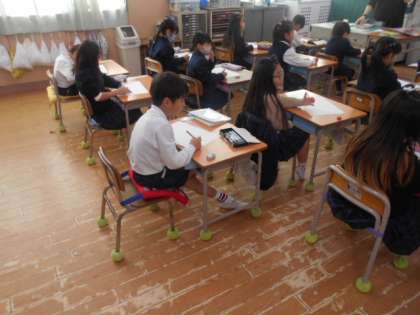 おもい出して かこう 公開日 2023/12/08 更新日 2023/12/08 1年 1年2組では国語科「おもい出して かこう」を学習していました。まずは、原稿用紙の使い方のおさらいをしていました。1行目に題、2行目の下の方には名前、そして、3行目から本文を書きだしますが、「気をつけなければいけないことは、1マスあけて……。」がんばって書いていました。 いいね(0)