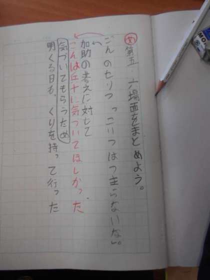 ごんぎつね 公開日 2023/12/11 更新日 2023/12/11 4年 4年1組では国語科「ごんぎつね」を学習していました。家の土間にくりやまつたけが置かれているのを、ごんのお蔭と気づかず神様に感謝している加助に対して、ごんの気もちを考えました。 さらに、次の日栗を届けに行ったごんの気もちについても考えていました。 いいね(0)