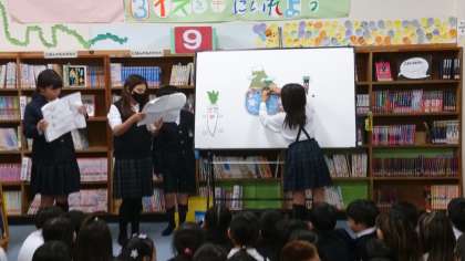 パネルシアター 公開日 2023/12/12 更新日 2023/12/12 その他 今日のパネルシアターは、「にんじんさん だいこんさん ごぼうさん」です。 たくさんの子が集まり、大盛況でした。 運動場が使えずさみしがっていた子も、パネルシアターのおかげで楽しめたようです。 図書委員会のみなさん、ご苦労様でした。 いいね(0)