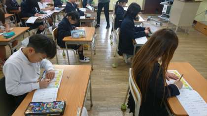俳句の学習をしました。「雪とけて」の季節は、冬かな?春かな? 漢字ドリルでは、みんな丁寧に書いていました。