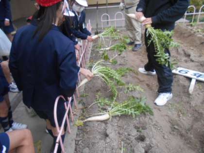 たいこんの収穫 6年 公開日 2024/01/16 更新日 2024/01/16 6年 今日は6年生がだいこんを収穫しました。 地域の方のおかげで、毎年大きなだいこんを収穫していますが、それも今年で最後。 鶴町産の味を、しっかりお家で味わってほしいと思います。 いいね(0)