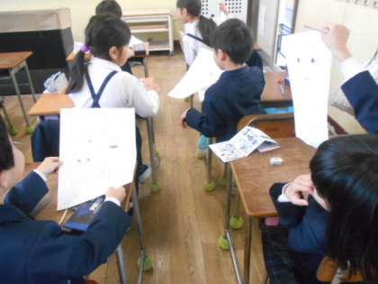 2年図工 公開日 2024/01/17 更新日 2024/01/17 2年 水たまりのようなもようで、おばけを描きました。 友だちと見せ合いをすると、「すごい!」「おもしろい!」とほめ合っていました。 これから清書と色ぬりもしていきます。 いいね(0)