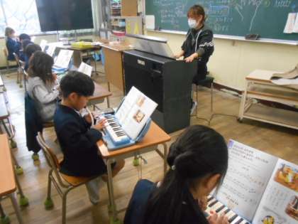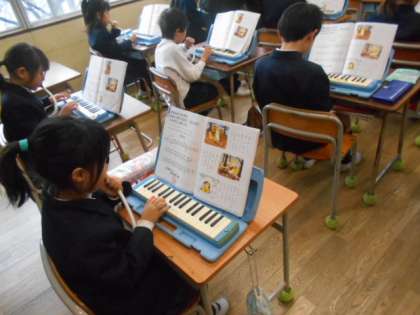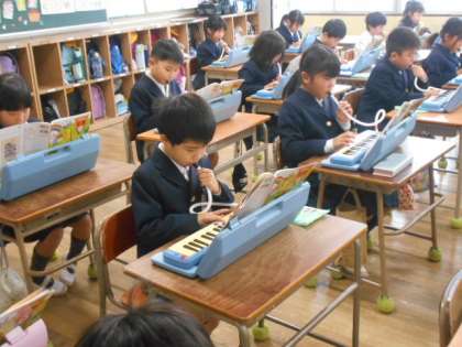 それから鍵盤ハーモニカに取り組むと、初めてでもとてもがんばって吹くことができていました。