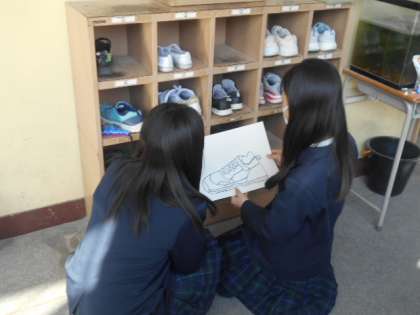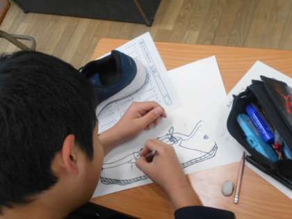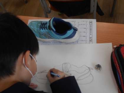 わたしのくつ 公開日 2024/02/07 更新日 2024/02/07 5年 5年1組では図画工作科の時間に「わたしのくつ」に取り組んでいました。自分の履いている靴をスケッチし、靴に対してメッセージを書き入れるようです。ひもが交差している部分や生地の縫い目など、簡単ではないですが、いつも見慣れている靴を、普段以上にしっかりと観察して描いていました。 いいね(0)