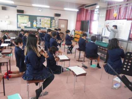 威風堂々 公開日 2024/02/14 更新日 2024/02/14 5年 5年2組では音楽科の時間に「威風堂々」のリコーダー—演奏に取り組んでいました。「♯ファ」の指使いについてバロック式を練習していました。右手の人差し指と小指の扱いが間違いやすいので、徹底して練習していました。 いいね(0)