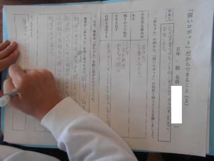 テクノロジーの進歩について考えよう 公開日 2024/02/14 更新日 2024/02/14 5年 5年1組は国語科「テクノロジーの進歩について考えよう」を学習していました。筆者は弱いロボットの特性を3つ挙げています。説明する際には、人間の赤ちゃんを例に挙げていますが、その理由ついて話し合っていました。 いいね(0)