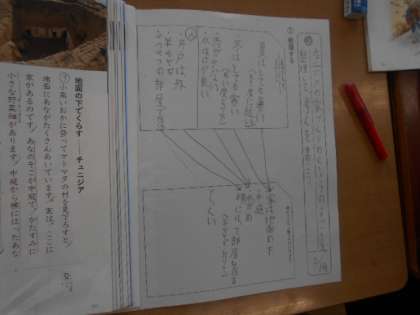 人をつつむ形〜世界の家めぐり〜 公開日 2024/02/14 更新日 2024/02/14 3年 3年1組では国語科「人をつつむ形〜世界の家めぐり〜」を学習しています。本時では、チュニジアという国の家づくりを読み取り、工夫のすばらしさについて考えを書き表します。その土地の特徴に合わせて家づくりが行われていることに気づけたでしょうか。 いいね(0)