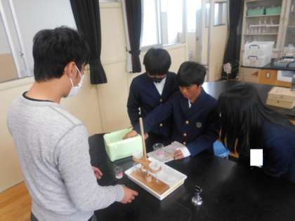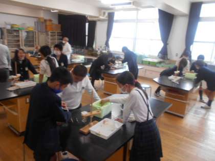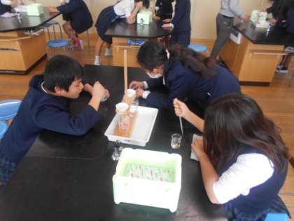 もののとけ方2 公開日 2024/02/15 更新日 2024/02/15 5年 グループで協力しながら実験を進めています。ミョウバンの水溶液と食塩水では、実験結果が違うようです。せっかく実験した後のビーカーを誤ってひっくり返す場面も見られました。落ち着いて。 それでは、食塩水から食塩を取り出すには、どうすればいいのでしょうか。 いいね(0)