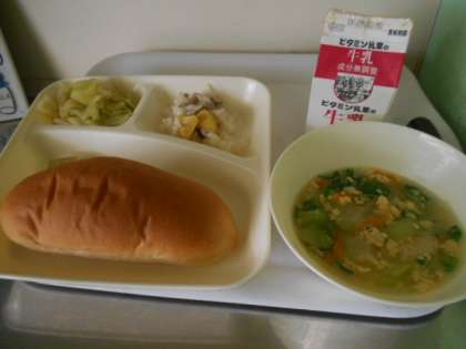 卵スープはふわふわした卵がたっぷり。鶏肉も入っているので、親子丼ならぬ「親子スープ」とも呼べる一品です。