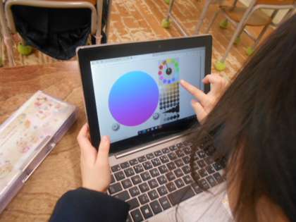 1年1組ではタブレットを操作して、「こころの天気」入力の仕方について学んでいました。これから、心の中がもやもやするときには、天気で伝えてほしいと思います。