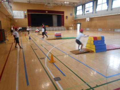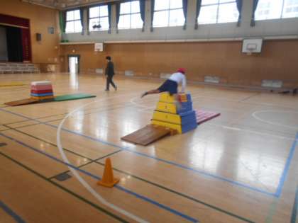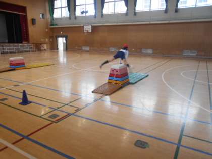 とびばこ運動 公開日 2024/02/20 更新日 2024/02/20 3年 3年1組では体育科の時間に「とびばこ運動」に取り組んでいました。開脚跳びや閉脚跳びの練習をしています。高さは自分の課題に合わせて調節していました。「跳び箱と跳ぶのが怖いな。」と思ってしまう児童は、軟らかいウレタン跳び箱で練習していました。がんばって何度も何度も練習していました。 いいね(0)