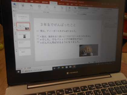 3年生になってできるようになったこと 公開日 2024/02/26 更新日 2024/02/26 3年 3年2組では、タブレットを使って「3年生になってできるようになったこと」をプレゼンテーションにまとめていました。まず原稿用紙に下書きをしてから、キーボードで文字を打ち込んでいました。わかりやすいプレゼンになるように、関連する写真を張り付けたり、箇条書きの説明を付け加えたり、工夫が見られました。でき上がりが楽しみです。 いいね(0)
