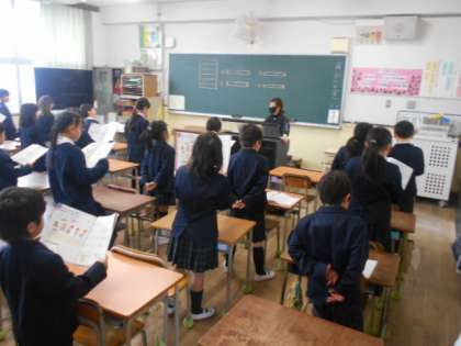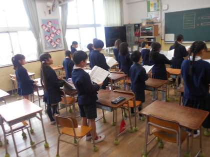 「こぐまの 二月」「山の ポルカ」 公開日 2024/02/26 更新日 2024/02/26 2年 運動場まで大きな歌声が聞こえてくるので、どこから聞こえるのか確かめてみると2年生の教室からでした。音楽科の時間に「こぐまの 二月」「山の ポルカ」を歌っていました。子熊が冬眠から目覚めるように、実際にポルカを楽しく踊っているような歌声でした。 いいね(0)