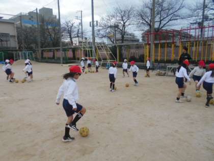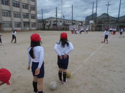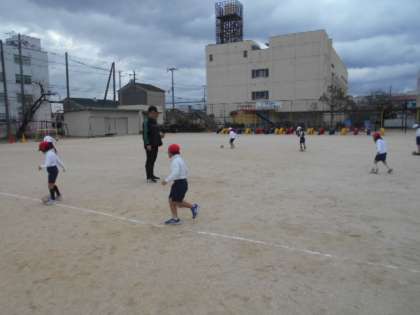 ドリブルの練習 公開日 2024/02/26 更新日 2024/02/26 1年 1年生は体育科の時間に「ボールあそび」に取り組んでいました。前半は足の内側や裏の部分でボールを扱う練習「ボールタッチ」「ペンギンタッチの練習」でした。 後半は、30mドリブルで移動します。ボールを前方遠くへ強く蹴り過ぎないように、どのように気をつけたらいいのかを考えながら練習していました。 いいね(0)