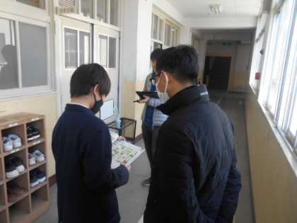 English speaking test 公開日 2024/02/28 更新日 2024/02/28 5年 5年2組では英語科の時間に「English speaking test」が行われていました。一人ずつ廊下に呼ばれて、先生から英語で道を尋ねられます。地図を見ながら「Go straight for 〜 blocks.」「Turn left at the corner.」など答えていきます。教室内で待っている間も、友だちと練習していました。 いいね(0)