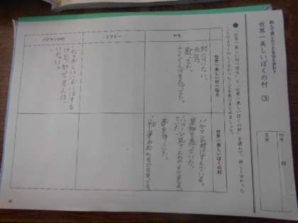 2つの物語を読んで新しくわかったこと、よりくわしくわかったこと 公開日 2024/03/06 更新日 2024/03/06 4年 4年2組では国語科の時間に「世界一美しい村へ帰る」と「世界一美しいぼくの村」を読んで、新しくわかったこと、よりくわしくわかったことを表にまとめていました。よく似ているお話ですが、よく読んで季節や戦争の進み具合の違い、さらに登場人物の気もちの変化が読み取れてきました。 いいね(0)