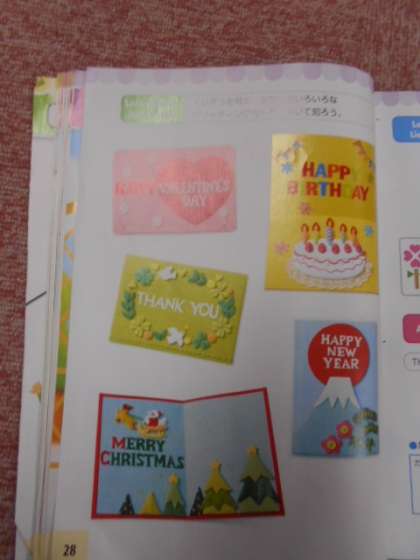これから、メッセージカードにちなんだ、クリスマスカードや年賀状などについて学習していくようで