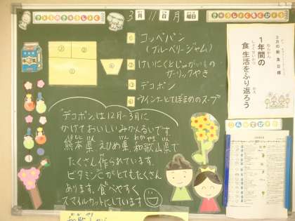 今日の給食 公開日 2024/03/11 更新日 2024/03/11 その他 鶏肉とじゃがいものガーリック焼きは、にんにくの香りが食欲をそそり、パンにもよく合います。 スープは、ウインナーのうまみがとけこみ、てぼ豆のほくほくした食感がおいしいです。 デコポンはみずみずしくて、とても甘いです。 今日もごちそうさまでした。 いいね(0)