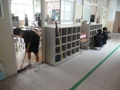 4月4日(木)、明日の入学式に向けて準備するために、新6年生が登校してきてくれました。まず式場の準備です。椅子・机並べや、レッドカーペット敷き、ひな壇の組み立てなど、力仕事をがんばってくれました。次に、1年生教室や式場周辺、廊下・階段・トイレなどを分担して清掃くれました。「さすが、最高学年」と思える大活躍でした。