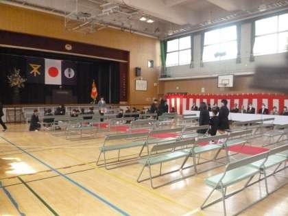 6年生に手をひかれて式場へ入場してきました。6年生は1年生を自分の席まで優しく誘導していました。6年生は「最高学年になったんだ。がんばろう。」という気もちをしっかりもっていることが感じられました。