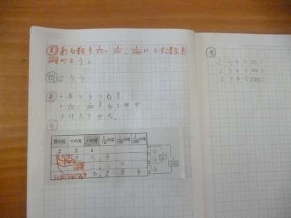 ある数を1/10、1/100した数 公開日 2024/04/12 更新日 2024/04/12 5年 5年1組では算数科「数のしくみを調べよう」を学習しています。本時では、「234」を「1/10」「1/100」「1/1000」したらどんな数になるのかを考えていました。見通しの段階から、小数点が移動することや位が小さくなることの予想がついているようです。この数のしくみを忘れないようにマスターしてほしいです。 いいね(0)