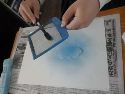 スパッタリング 公開日 2024/04/15 更新日 2024/04/15 6年 6年2組では図画工作科の時間にスパッタリングに取り組んでいました。網に絵の具を合わせて、ブラシでこする技法で、水の分量が適量であれば、絵の具が散って綺麗な模様になります。 好きな形に切った型紙を画用紙の上に載せて上からこすると、きれいな模様のでき上がりです。 いいね(0)