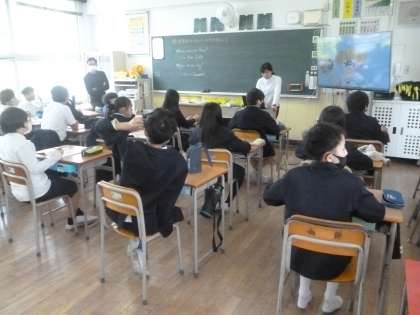 6年1組では英語科「出身国や住んでいる所を伝えよう」を学習しています。「Where are you from?」「I’m from 〇〇?」「Where do you live?」「I live in 〇〇.」会話を練習しました。
