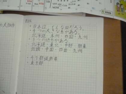 都道府県で注目するところ 公開日 2024/04/17 更新日 2024/04/17 4年 4年2組では社会科の時間に地図帳に載っている日本地図を調べていました。大きな4つの島・8つの地方・47の都道府県、日本地図からわかることをノートに書き込んでいました。 特に都道府県の位置や名前はしっかり覚えてほしいです。都道府県の形や文字に着目して覚えられるようにがんばってほしいです。 いいね(0)