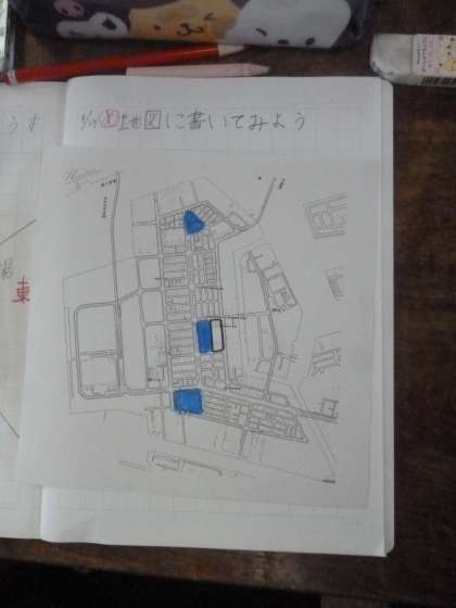 地図にかいてみよう 公開日 2024/04/19 更新日 2024/04/19 3年 3年生では社会科の時間に、自分たちが住んでいる町、鶴町の地図を調べていました。まずは、みんながあそぶ公園がどこなのかを調べて、青色に塗っていました。数か所あるのが分かりました。 次は、鶴町とよその町をつなぐ橋の場所と名前を、先生と確かめていました。 いいね(0)