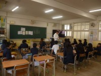 英語の名刺交換 公開日 2024/04/30 更新日 2024/04/30 5年 5年1組では英語科の時間に、英語を使った名刺を交換する取り組みをしていました。名刺の上側には英語の名前を、下側には好きなものの絵をかいていました。 この後、自由に立ち歩いて、名刺交換するようです。 いいね(0)