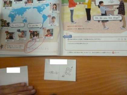 英語の名刺交換 公開日 2024/04/30 更新日 2024/04/30 5年 5年1組では英語科の時間に、英語を使った名刺を交換する取り組みをしていました。名刺の上側には英語の名前を、下側には好きなものの絵をかいていました。 この後、自由に立ち歩いて、名刺交換するようです。 いいね(0)