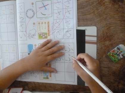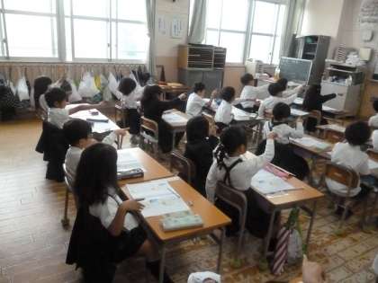 「ふ」 公開日 2024/05/01 更新日 2024/05/01 1年 1年生は国語科の時間に、ひらがな「ふ」を習っていました。1の部屋から4の部屋の中で、どの部屋のどの位置から書き始めるのか確認をしてから空書きします。はねる方向、はらう方向、書き順、いろいろな点に気を配りながら、手本をしっかり見て練習していました。 いいね(0)