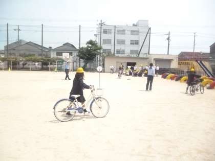 4時限目は、5・6年生へ教えていただきました。大正区では子どもと高齢者は歩道を自転車で通ってもいいのですが前に歩行者がいる時には気をつけること、夜間委は必ずライトをつけること、交差点では一時停止して安全確認を怠らないことなどを学びました。