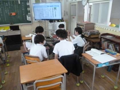 6年1組では国語科「意見を聞いて考えよう」を学習しています。教科書に載っている金子さん・竹内さん・中村さん、3人の意見を聞いたうえで、自分の意見をノートに書きます。3人の意見をもとに考えて意見が書けたでしょうか。