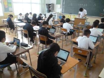 4年1組はタブレットでローマ字入力の練習をしていました。ひらがな入力よりローマ字入力の方が使うボタンの範囲が狭いので、慣れたら効率よく早く入力できます。ローマ字入力に早く慣れてほしいと思います。